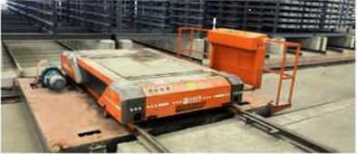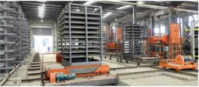 本生產(chǎn)線預(yù)制成型的濕磚由升板機將其提升放置在鐵架之上每一層磚板相互隔離,放滿之后可用又車將整個鐵架轉(zhuǎn)移至養(yǎng)護區(qū),也可配套新能源智能子母車將其轉(zhuǎn)運至養(yǎng)護窯內(nèi)進行養(yǎng)護。