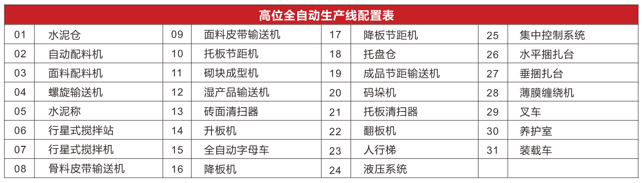 該全自動(dòng)砌塊生產(chǎn)線采用閉環(huán)生產(chǎn)流程設(shè)計(jì),由電腦、各種傳感器、機(jī)電液壓、機(jī)械組件組成,整個(gè)生產(chǎn)過(guò)程都是由 電腦控制,機(jī)械自動(dòng)化完成。包括:原材料的感測(cè)計(jì)量含水率、智能動(dòng)態(tài)調(diào)整攪拌水分比、濕料輸送成型生產(chǎn)控制、 濕產(chǎn)品輸送、電梯式立體升疊、子母擺渡車轉(zhuǎn)運(yùn)至養(yǎng)護(hù)窯養(yǎng)護(hù)、子母擺渡車自動(dòng)識(shí)別空窯和窯量、將未養(yǎng)護(hù)的濕產(chǎn)品 送入窯中養(yǎng)護(hù)、將已完成養(yǎng)護(hù)的干成品送至降板機(jī)、分層降送到干產(chǎn)品輸送機(jī)上、傳送到碼垛區(qū)、自動(dòng)碼垛抓手將養(yǎng) 護(hù)的干產(chǎn)品根據(jù)需要堆碼到托盤上約一個(gè)立方一跺、平板車輸送到自動(dòng)打包區(qū)等。